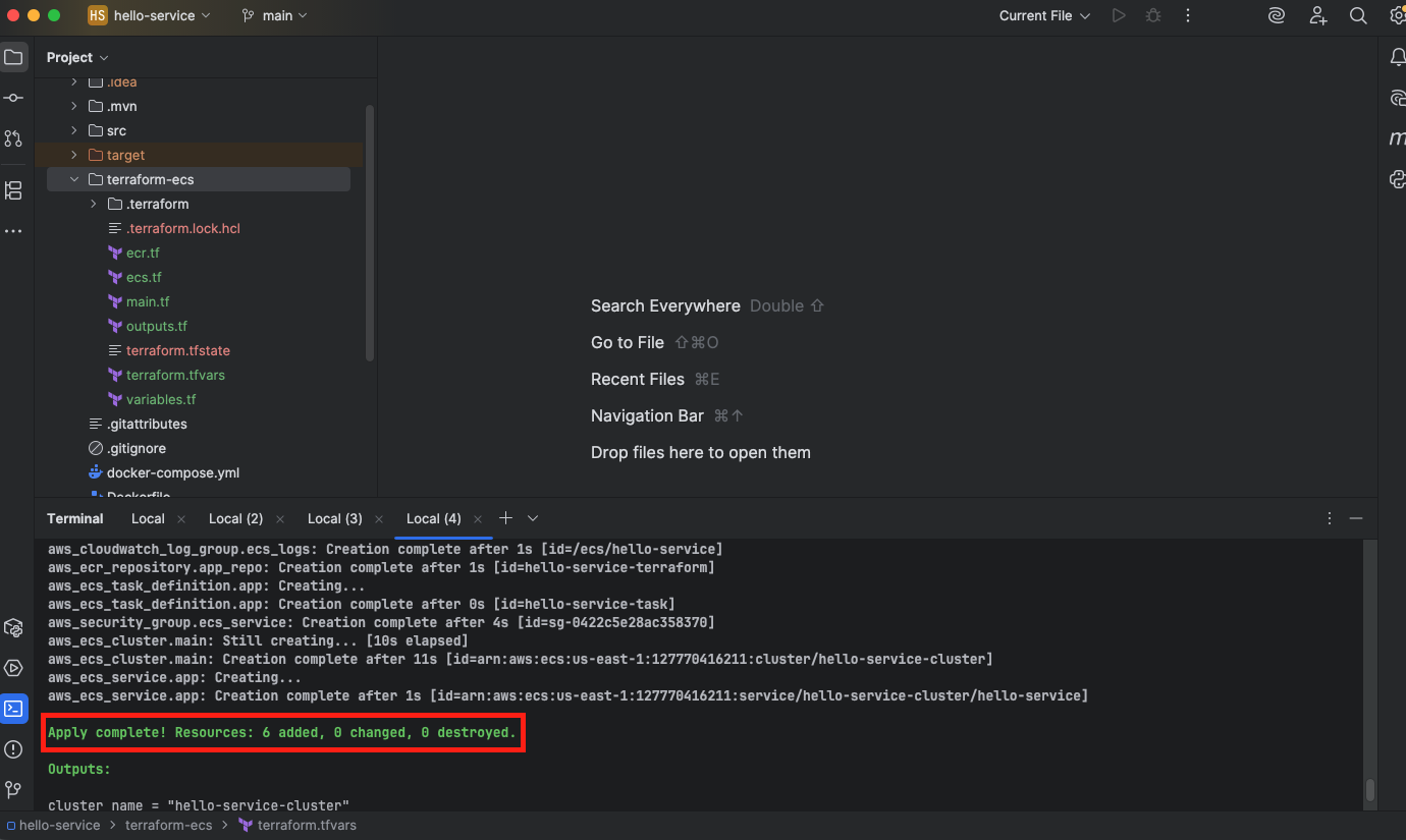 terraform applyagain - it will show “Apply complete!” with “0 to add, 0 to change, 0 to destroy” if everything is already created