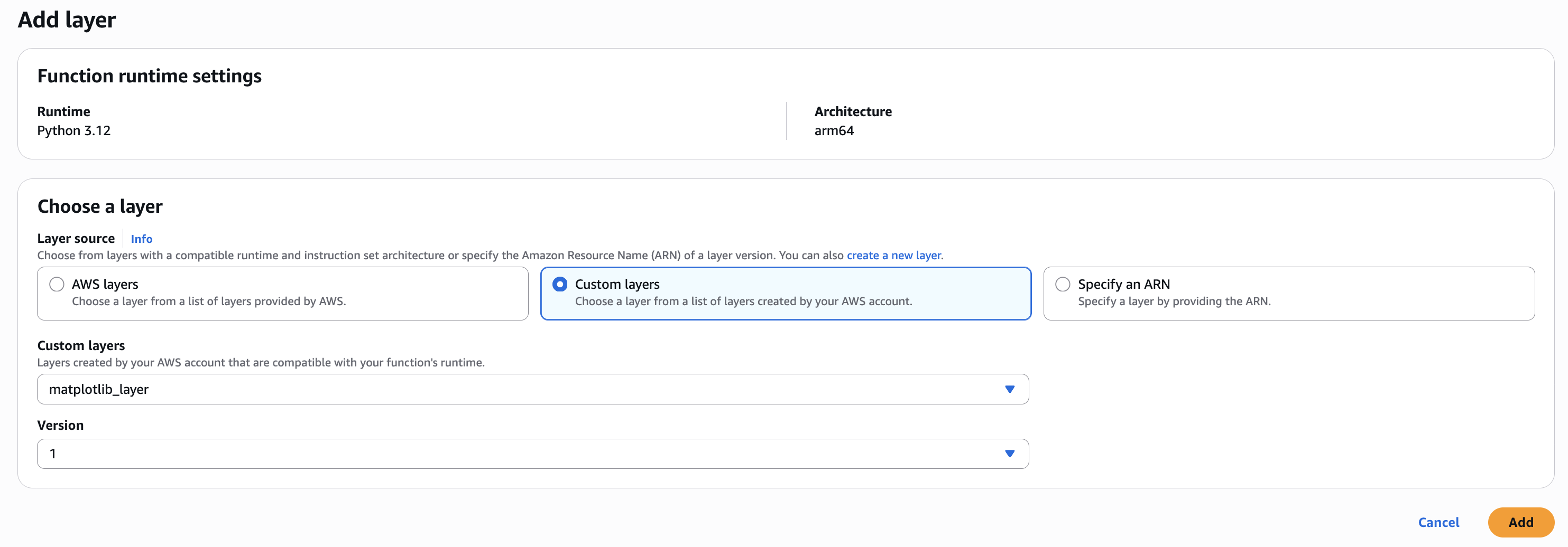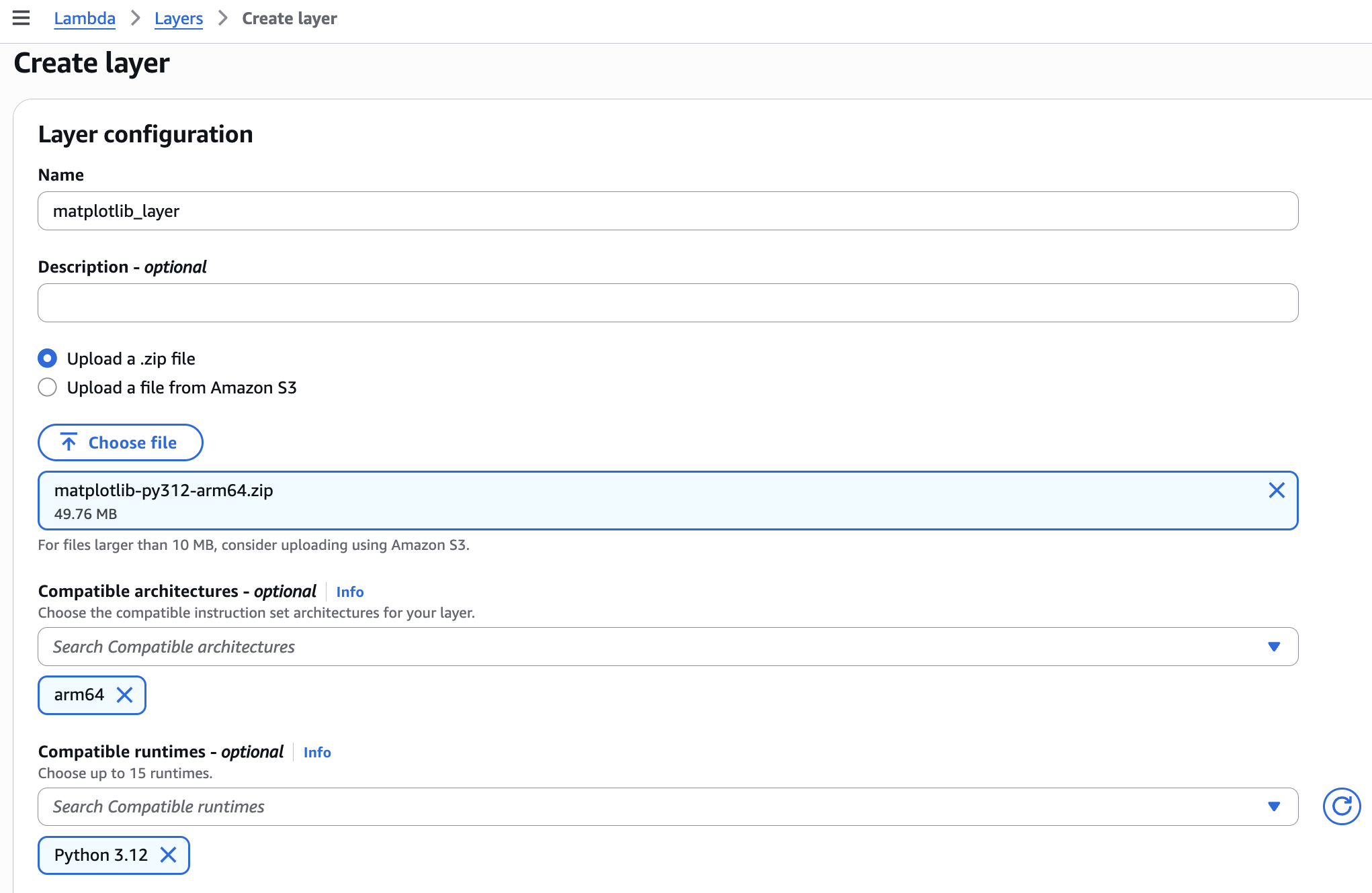 cd layer && zip -r matplotlib-py312-arm64.zip python && cd ..